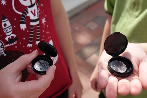 People gathered in Pack Square Park for the ceremonial. U.S. Mint photo by Sharon McPike. Children hold their new Blue Ridge Parkway quarters. U.S. Mint photo by Sharon McPike.