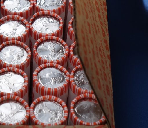 A box of Blue Ridge Parkway quarters at the coin exchange. U.S. Mint photo by Sharon McPike.