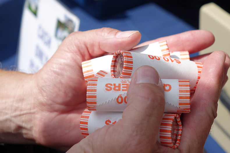 Attendees of the quarter ceremonial launch exchanged their money for rolls of new quarters. U.S. Mint photo by Sharon McPike.