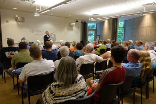 A crowd of local residents and coin enthusiasts came out to a Blue Ridge Parkway visitor center to learn about U.S Mint programs from Associate Director of Manufacturing David Croft. U.S. Mint photo by Sharon McPike.