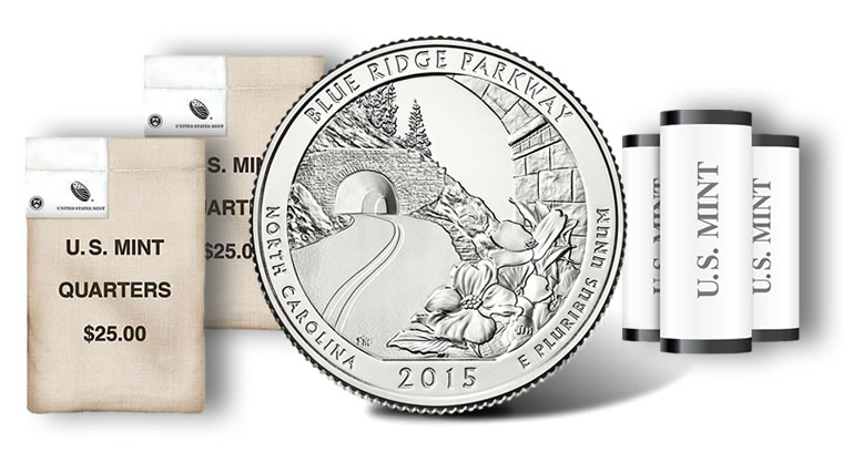 Today, June 29, the United States Mint released rolls and bags of the America the Beautiful Quarter honoring Blue Ridge Parkway in North Carolina. This quarter is the third in 2015 and the 28th overall, signaling the completion of the first half of the fifty-six quarter series.