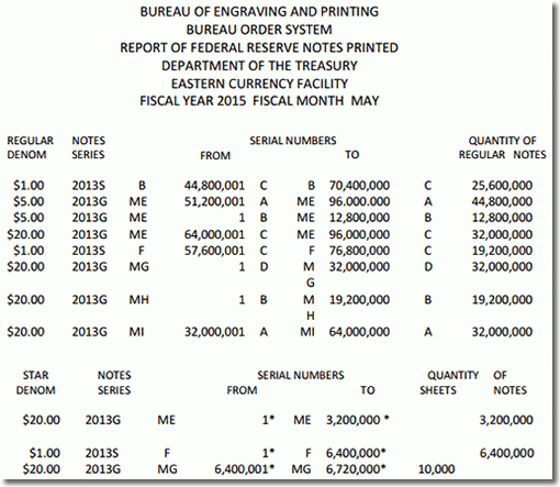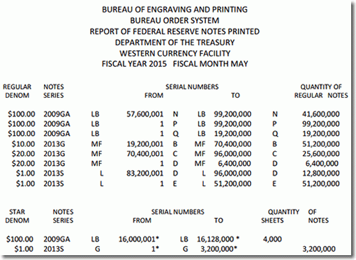 May 2015 BEP Banknote Production