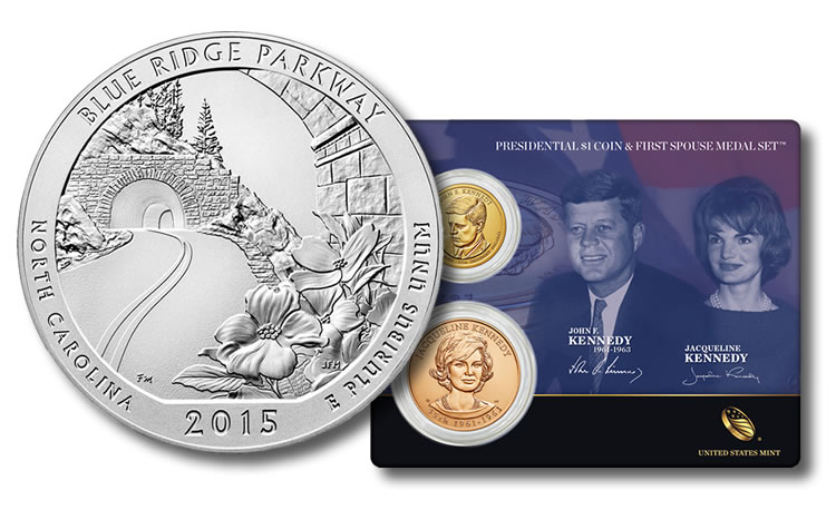 Australian coins, Canadian coins, a five-ounce Blue Ridge Parkway silver coin, and a Kennedy $1 Coin and First Spouse Medal Set are among new collector releases this week from U.S. and world mints.