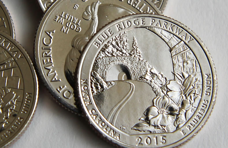New America the Beautiful Quarter products appear on this week’s sales report. They include 25-cent pieces bearing a design emblematic of Blue Ridge Parkway in North Carolina.