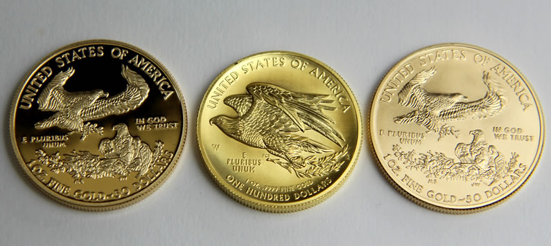 In ending, here are some larger photos of the coin, which include comparisons with proof and uncirculated 2015-dated American Gold Eagles.