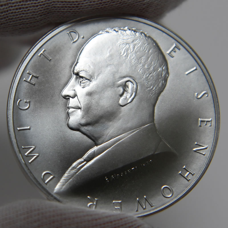 Lastly, here are photos of the Eisenhower bronze medal that the set’s silver medal is based upon.