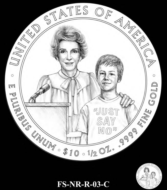 Earlier designs went under the microscope in June, reviewed by the CCAC and Commission of Fine Arts (CFA). Both bodies agreed on a portrait of Mrs. Reagan for the obverse or heads side of each coin, which she also favored, but they suggested further development on artwork for the reverse.