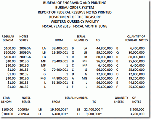 June 2015 BEP Banknote Production
