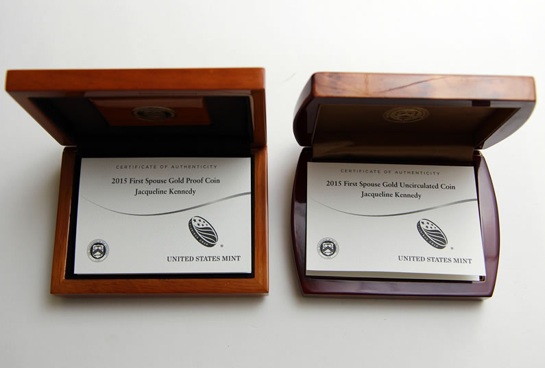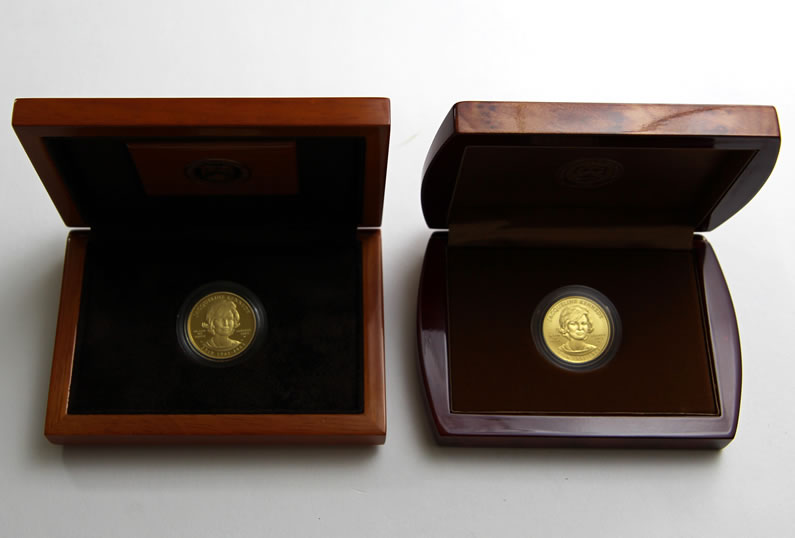 First Spouse Gold Coins ship inside lacquered hardwood presentation cases with a certificate of authenticity.