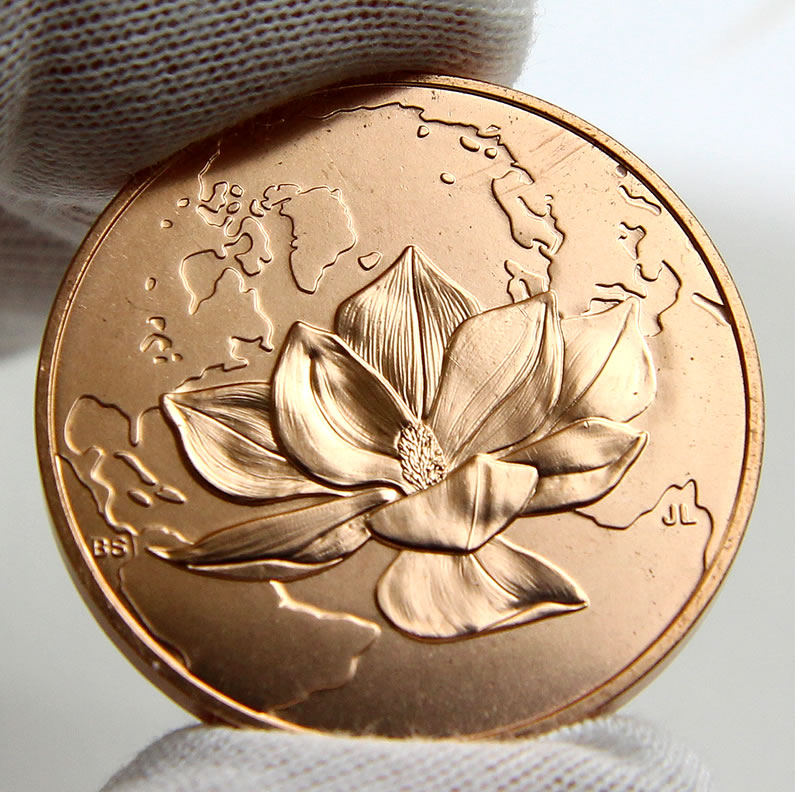 These next photos are of the bronze medal, with the final ones of the medal between the two gold coins.