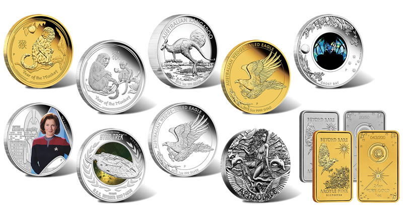 Gold and silver coins celebrating the Year of the Monkey dominate September releases from the Perth Mint of Australia. Several other numismatic products for the month have already drawn collectors’ interests, including a Goddesses of Olympus coin in high-relief and a two-coin set of Star Trek Voyager coins.