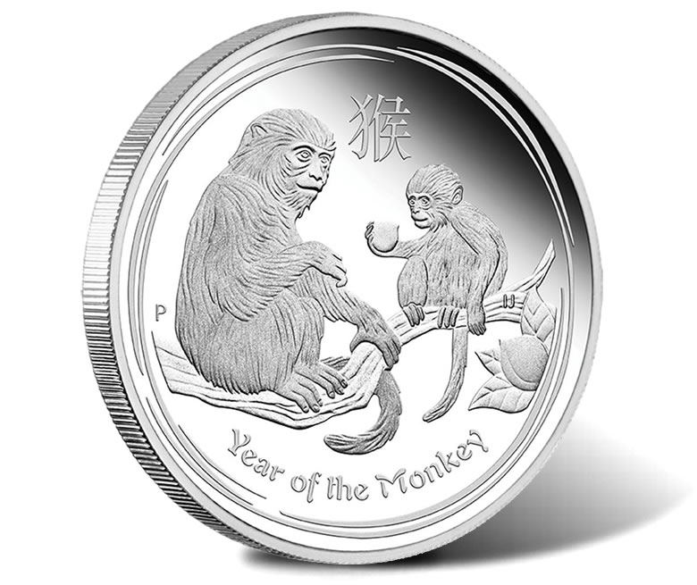 Year of the Monkey gold coins include one-ounce, one-quarter ounce and one-tenth ounce issues in collector proof quality along with a three-coin set. Individual silver issues encompass one kilo, one ounce and one-half ounce coins and a three coin set which includes a two-ounce coin, a one-ounce coin and a one-half ounce coin.