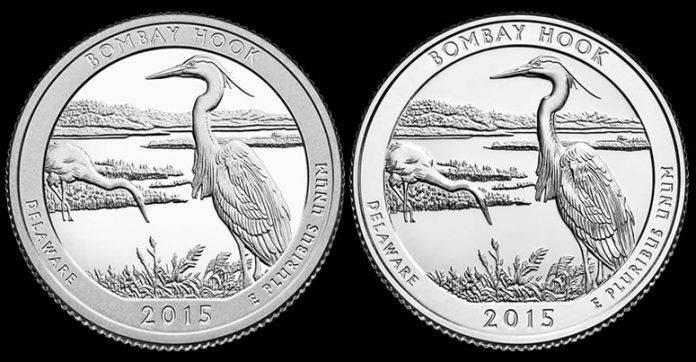 Today, Oct. 6, the United States Mint released the 2015 Bombay Hook Quarters Three-Coin Set. Quarters of the set commemorate the national wildlife refuge in Delaware.