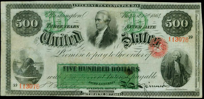 Headlining the sale is a unique Fr.212b 1864 $500 Interest-Bearing Note, lot #30256, which has been off the market since 1971. Graded PMG Very Fine 25 Net, the Friedberg plate note is one of only two known examples of the design type. It has a pre-sale estimate of $300,000 to $500,000.