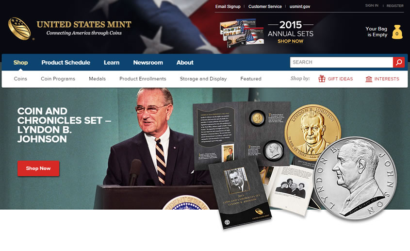 Priced at $57.95, sets include a 2015-P Reverse Proof Lyndon B. Johnson Presidential $1 Coin, a one-ounce .999 fine LBJ silver medal, and a 1973 8-cent Johnson postage stamp.