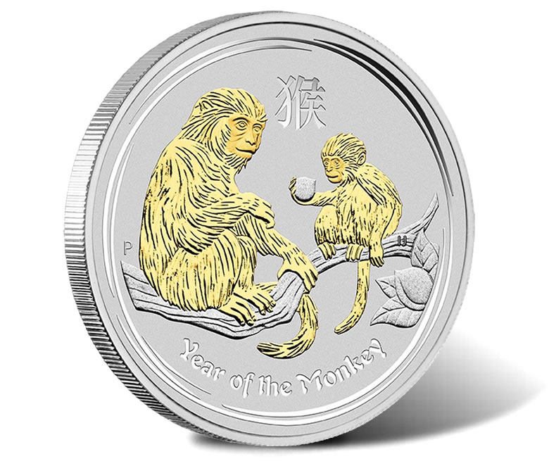 2016 Year of the Monkey 1 oz Gilded Silver Coin