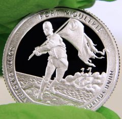 Quarters commemorating Fort Moultrie at Fort Sumter National Monument of South Carolina enter circulation in late 2016. In addition to those struck for general circulation at the U.S. Mint facilities in Denver and Philadelphia, the U.S. Mint in San Francisco also produces a version in proof for inclusion in special collector sets.