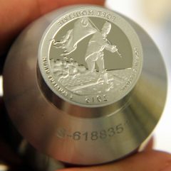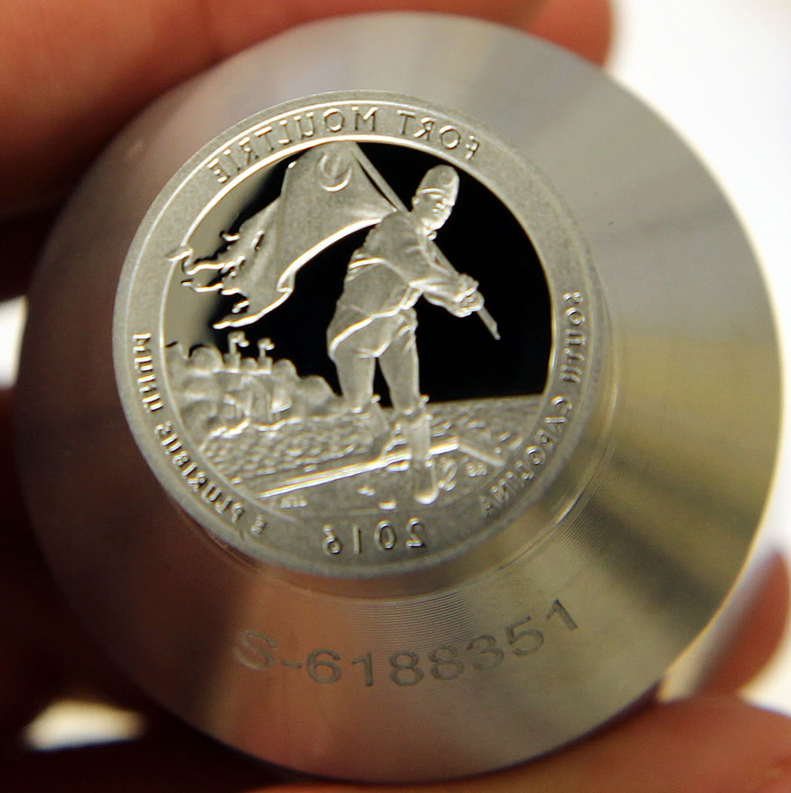 During a recent visit to the U.S. Mint’s facility in San Francisco, we were lucky enough to be able to take a few snapshots of next year’s Fort Moultrie quarter and the dies used to make them.