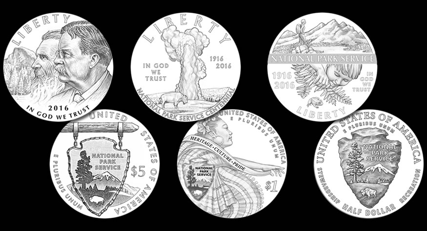 These United States Mint coins will be offered in gold, silver, and clad compositions, and they will be available in collector qualities of proof and uncirculated. Their launch in 2016 will feature designs emblematic of the centennial of the National Park Service (NPS).