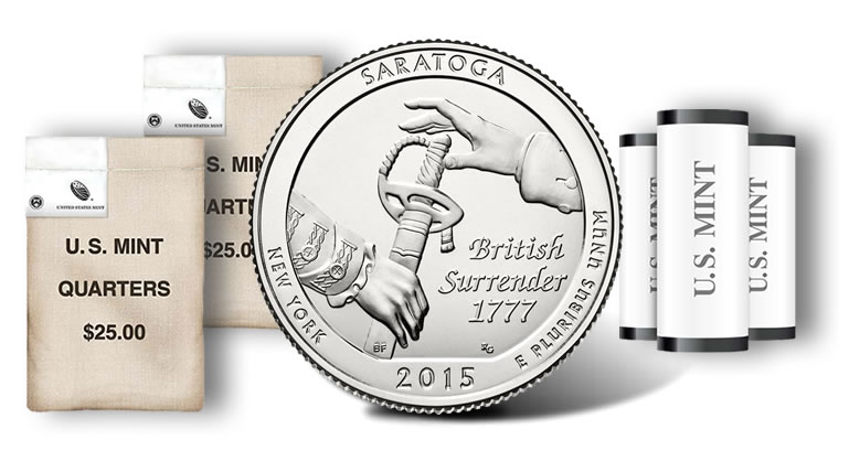 At noon ET today, Nov. 30, the United States Mint started taking orders for rolls and bags of America the Beautiful Quarters commemorating Saratoga National Historical Park in New York. This quarter features the last of the five designs for 2015 and marks the 30th overall in the series.