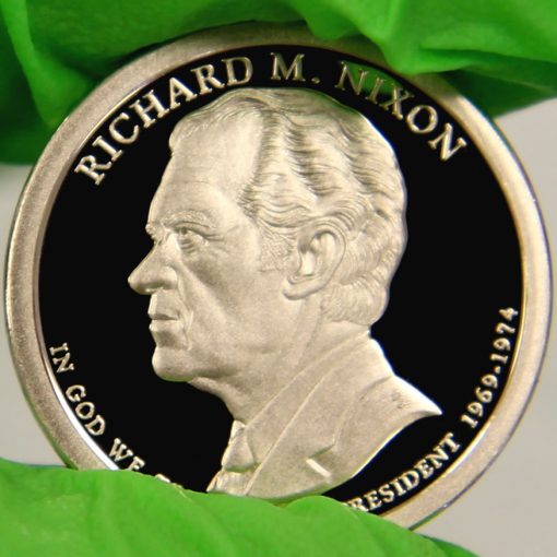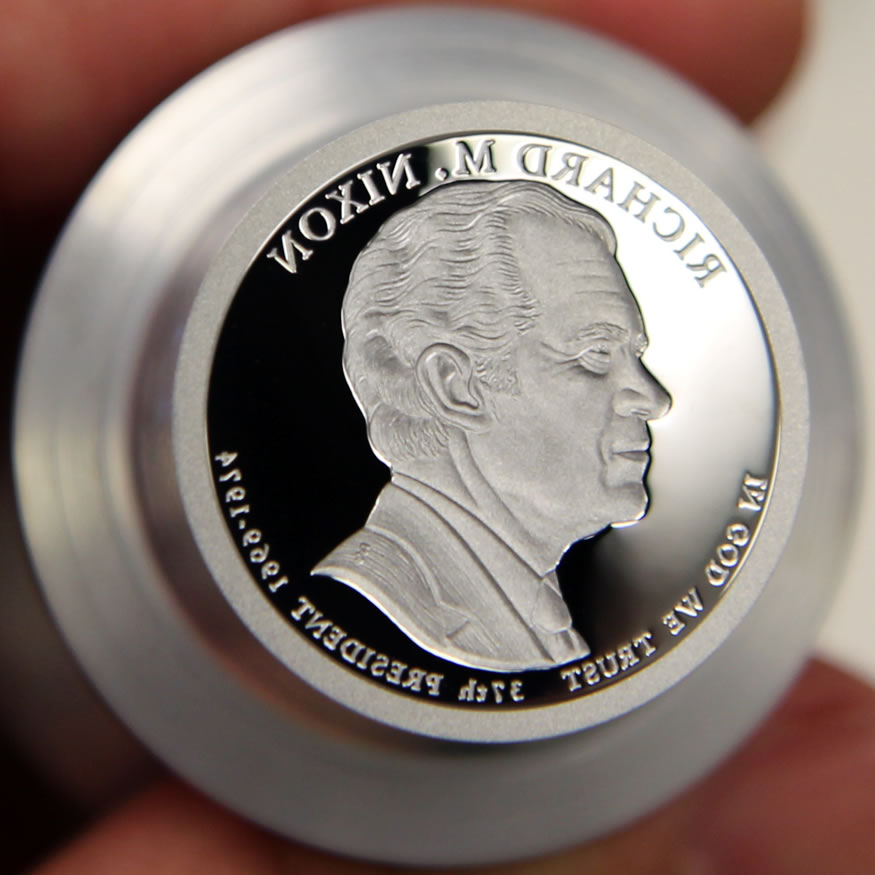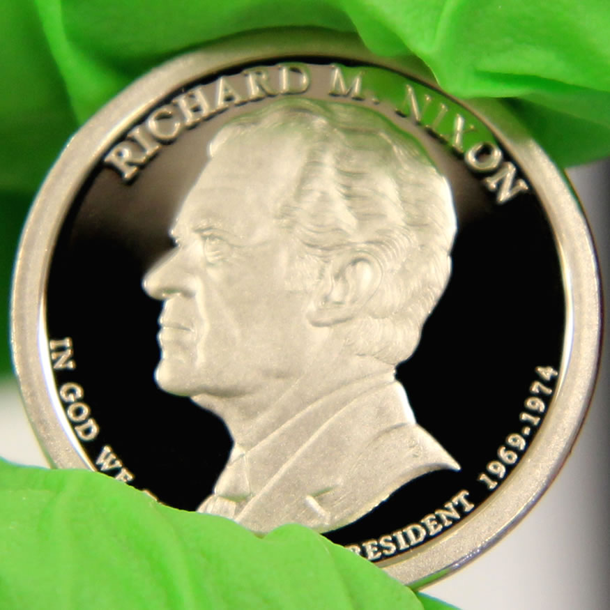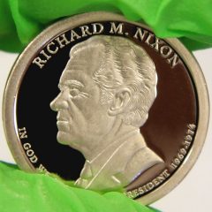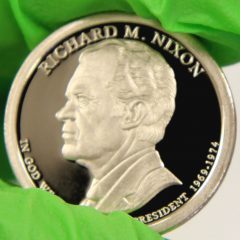 The U.S. Mint only recently announced design details of the Nixon Presidential $1 Coin. United States Mint Sculptor-Engraver Don Everhart created the portrait found on the coin’s obverse or heads side. Inscriptions around the effigy include RICHARD M. NIXON, 37TH PRESIDENT, 1969-1974 and IN GOD WE TRUST.