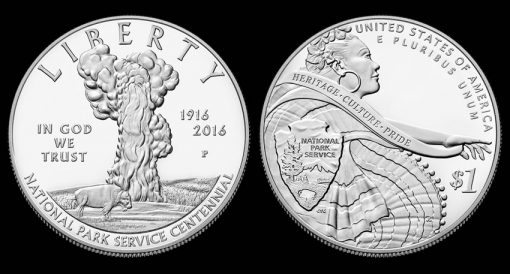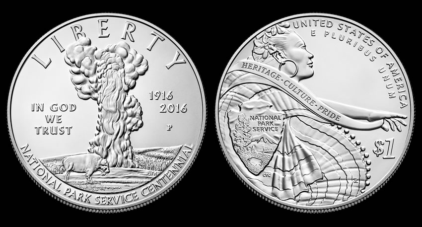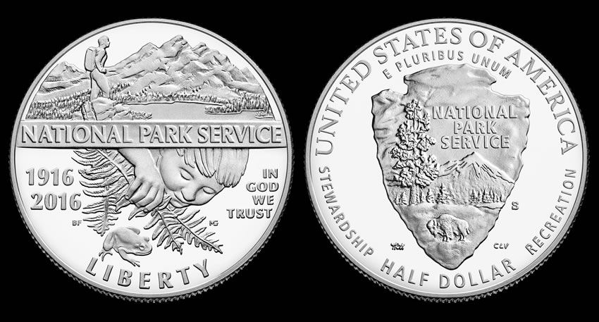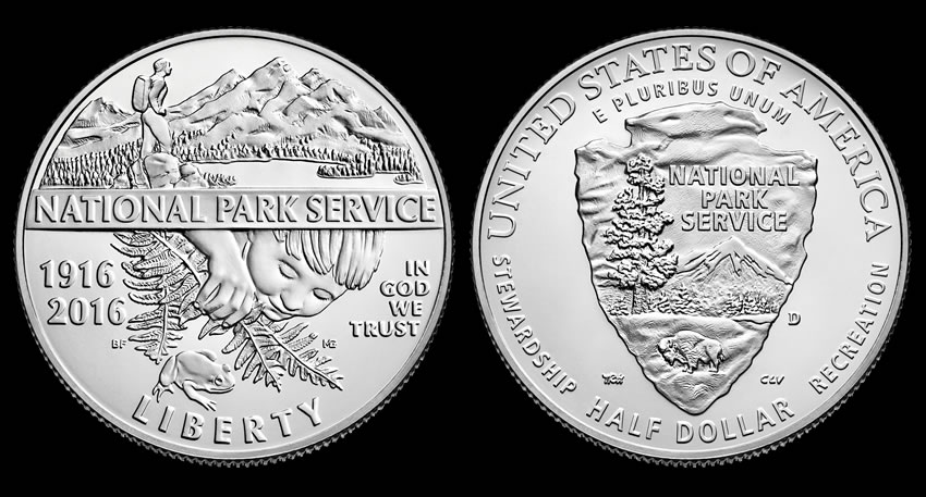 The United States Mint published images of six coins commemorating the centennial of the National Park Service (NPS). Their designs were originally unveiled on Nov. 19, 2015 during a ceremony at the U.S. Department of the Interior in Washington, DC.