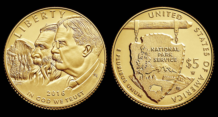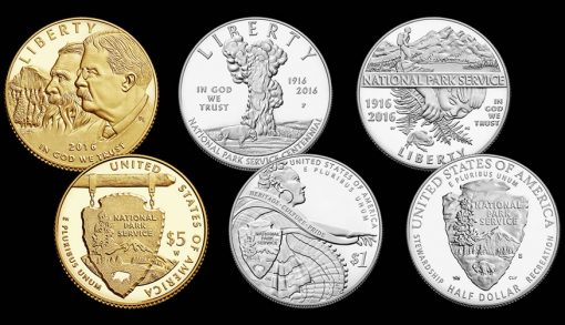 Featuring portraits, emblems, and iconic landscapes, the 2016 National Park Service 100th Anniversary Commemorative Coins will launch on Mar. 24, 2016 in collector proof and uncirculated finishes. Their quantities include up to 100,000 $5 gold coins; 500,000 silver dollars; and 750,000 clad half-dollars, but consumer demand will determine how many are actually made.