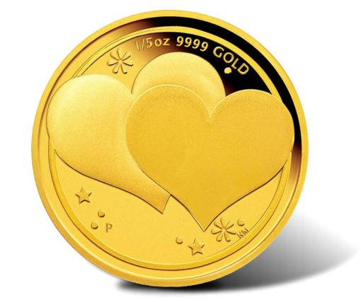 Each strike is featured in 1/5 ounce of 99.99% pure gold and appears in proof quality. This coin is also legal tender of Tuvalu. It has a very limited mintage of 2,013. According to the Mint, the mintage of 2,013 has an implied phonetic meaning of "love you my whole life" in Mandarin, which is represented by the Chinese characters 愛你一生. The coin is undated to represent timeless love.