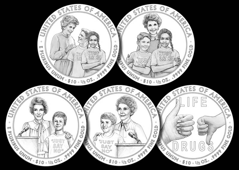 Artist renderings of candidate designs for the Ronald Reagan dollar and proposed designs for the Nancy Reagan gold coin were revealed last year.