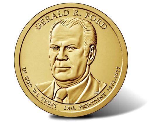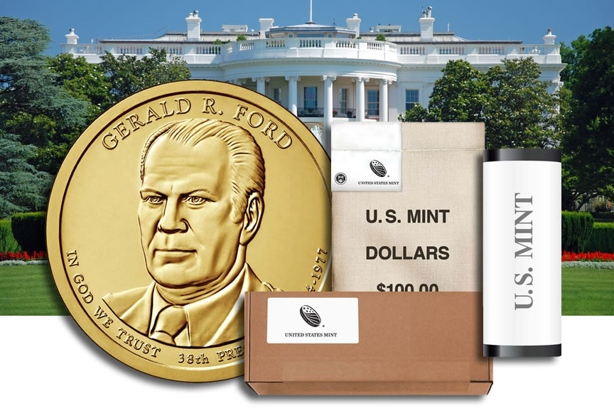 Earlier today, March 8, the U.S. Mint started selling the 38th Presidential $1 Coin. This release commemorates Gerald Ford who served as President of the United States from 1974 to 1977. Product options include rolls, bags and boxes of the dollars in circulating quality. (See photos of proof editions.)