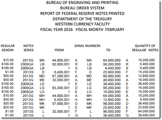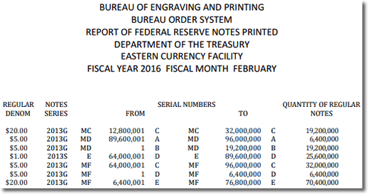 Below are images of the BEP’s latest monthly production report. They show the type of banknotes manufactured at the agency’s two printing facilities.