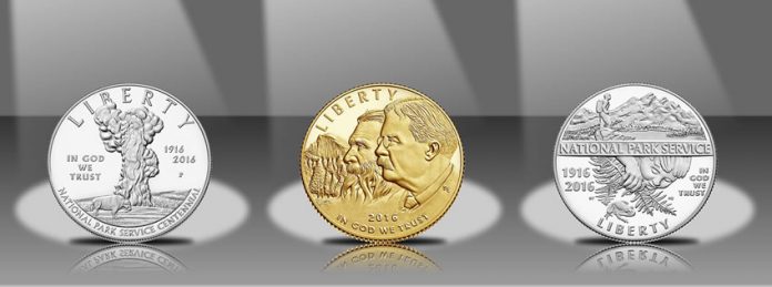 At noon ET today, March 24, the United States Mint will accept orders for $5 gold, $1 silver and 50c clad coins celebrating the 100th Anniversary of the National Park Service (NPS).