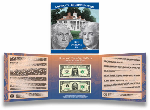 Starting at 8:00 a.m. Eastern Time on Tuesday, March 29, the Bureau of Engraving and Printing (BEP) will accept orders for the America’s Founding Fathers 2016 Currency Set with its two notes that share matching series numbers beginning with "2016"