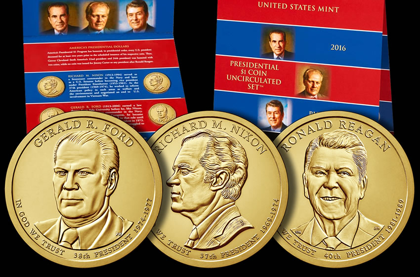 Collectors may also be interested in the 2016 Presidential $1 Proof Set, which feature dollars with frosted designs and mirror-like backgrounds. (See photos of this set.)