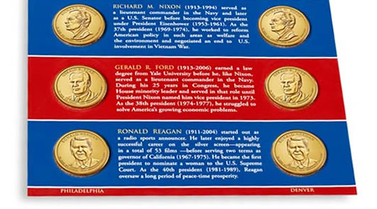 All six coins are held within a durable folder that offers short biographies and portraits of the presidents. They are also inside rotatable blisters for easy viewing and protection.