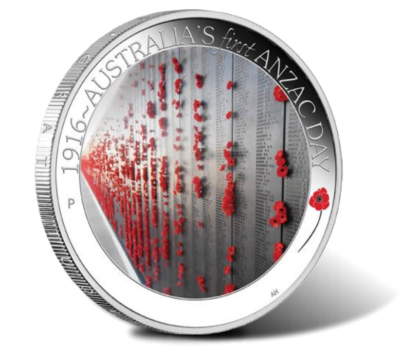 Three historic First World War images appear on one-half ounce, 99.9% pure silver coins issued as part of the ANZAC 100th Anniversary Silver Proof Coin Set.