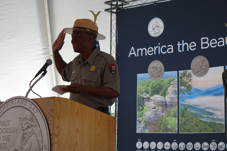 Guest speakers included U.S. Representative Hal Rogers, NPS Deputy Director Peggy O’Dell, NPS Director for the Southeast Region Stan Austin, Cumberland Gap National Historical Park Superintendent Sula Jacobs, and Marc Landry, plant manager of the U.S. Mint at Philadelphia.