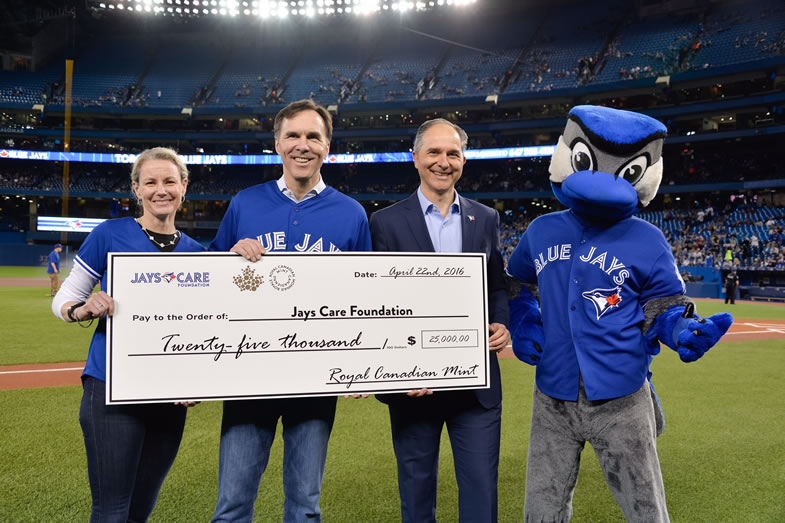 To recognize and support the Toronto Blue Jays in their charitable efforts to produce lasting social change for children and youth, the Royal Canadian Mint also donated $25,000 to Jays Care Foundation.