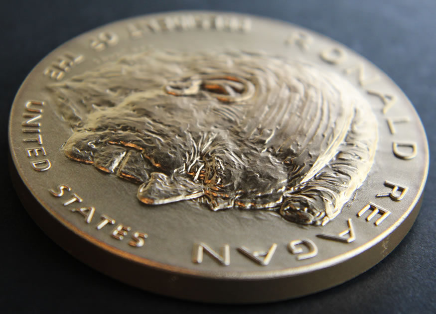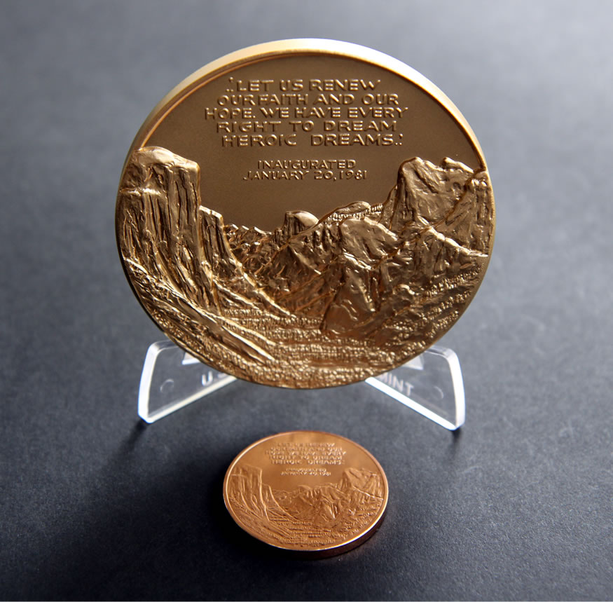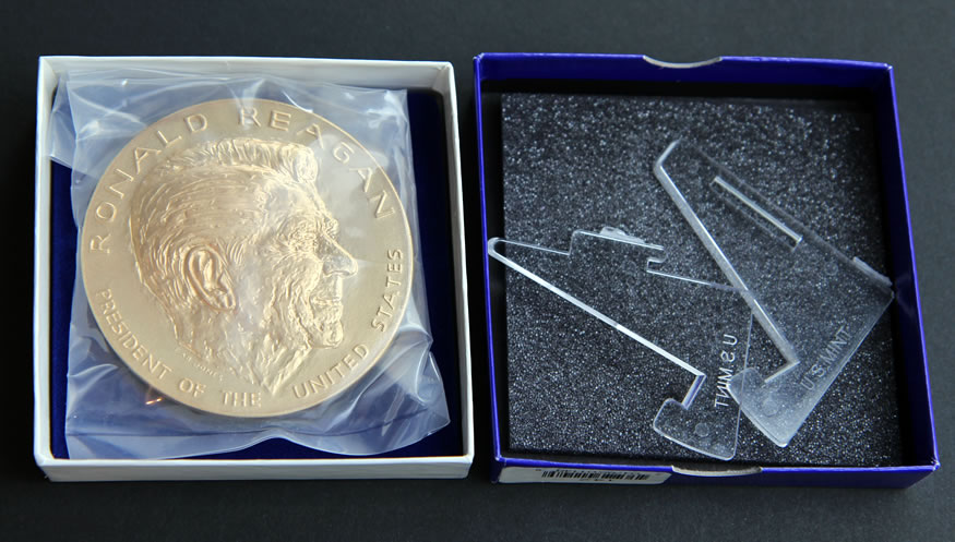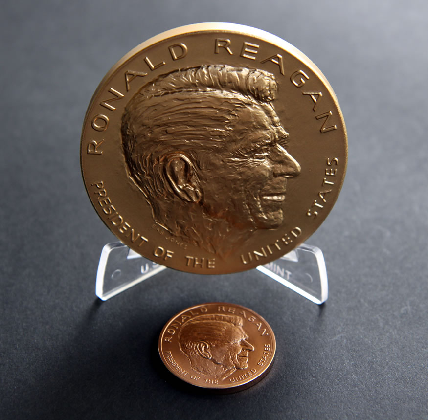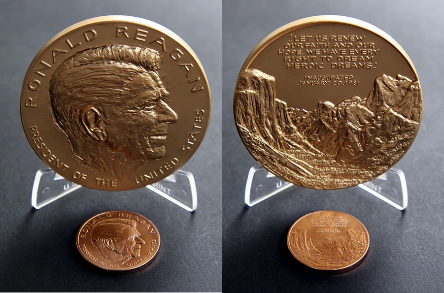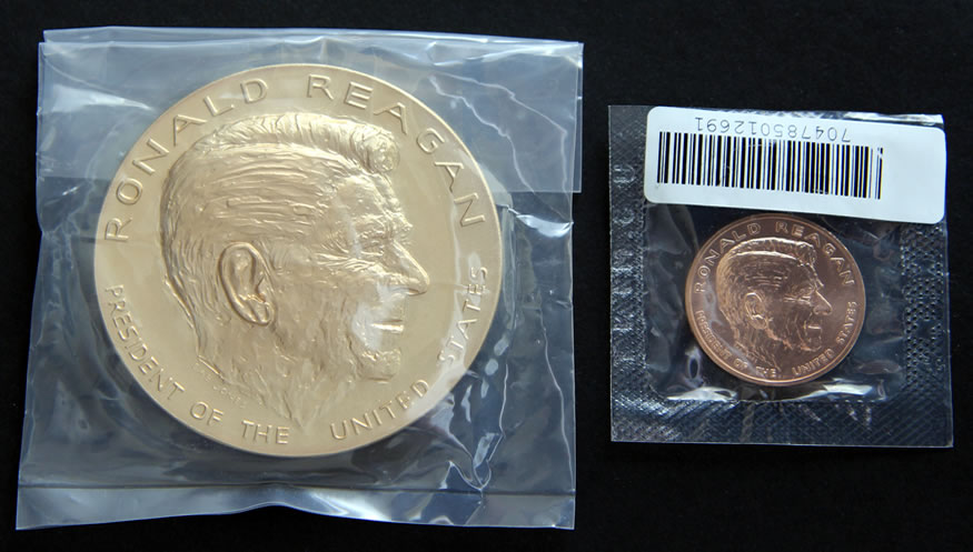 Below are some photos of the 3-inch and 1-5/16-inch Reagan medals. You’ll quickly notice the high-relief aspects of the larger one.