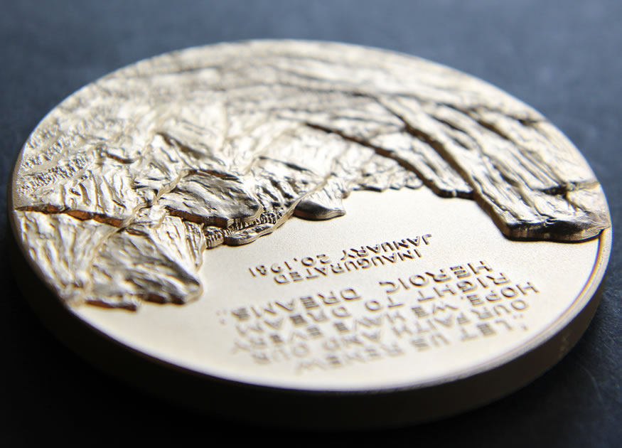 "The smaller medals are produced on presses much like those that are used to make coins," the Mint describes on its website. "The larger, 3-inch, high-relief medals are struck multiple times on hydraulic presses and hand finished."
