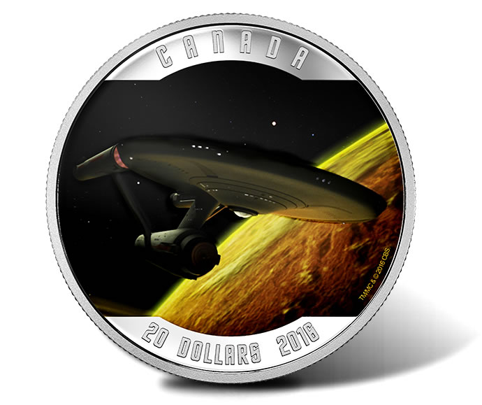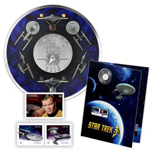They join a colored Star Trek specimen quality coin which offers varying view of the starship U.S.S. Enterprise. The coin and stamp set is available for CAD $34.95, which is about US $27.23.