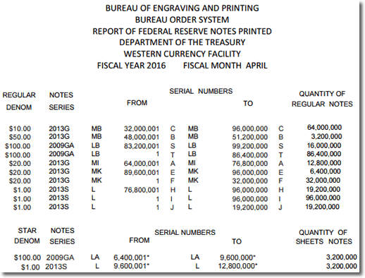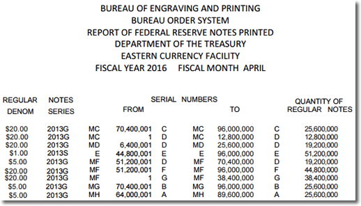 Below are images of the BEP’s latest monthly production report. They show the type of banknotes manufactured at the agency’s two printing facilities.