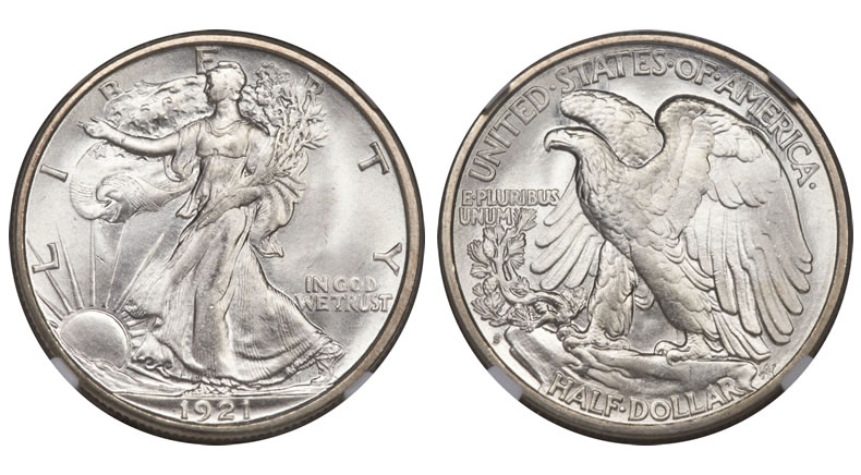 The Rev. Dr. James G. K. McClure Collection provides a number of exceptional rarities in the auction like a 1921-S half dollar, graded MS66 by NGC. It is unsurpassed in quality at either major grading service and the first example to be auctioned in a grade this high in more than a decade. As a well-circulated issue, only approximately 200 1921-S halves exist in Mint State, with a majority of those MS64 and lower.