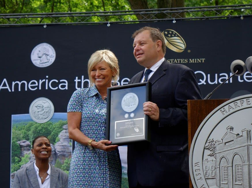 Quarters commemorating Harpers Ferry National Historical Park were introduced to the public Wednesday, June 8, at an event held in Harpers Ferry, West Virginia.
