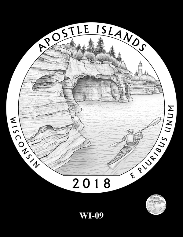 Overall, fifty-two designs were submitted for review. The CFA appraised them on June 16 and recommended five — one for each site honored. The CCAC looked them over on June 27 and selected four designs, asking for another round of candidates for Apostle Islands.