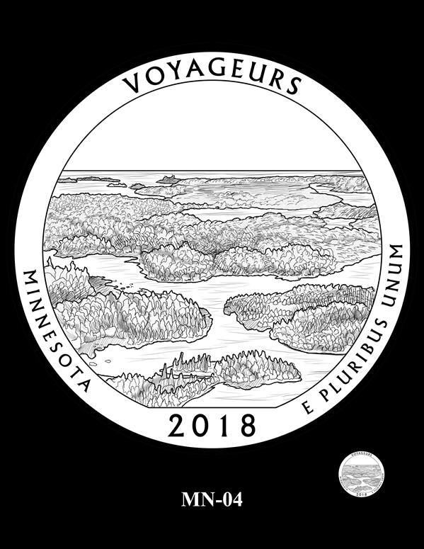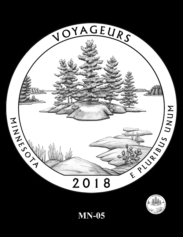 MN-05 features a view of a few of the small islands found in the waters of Voyageurs National Park. Park officials preferred this design.