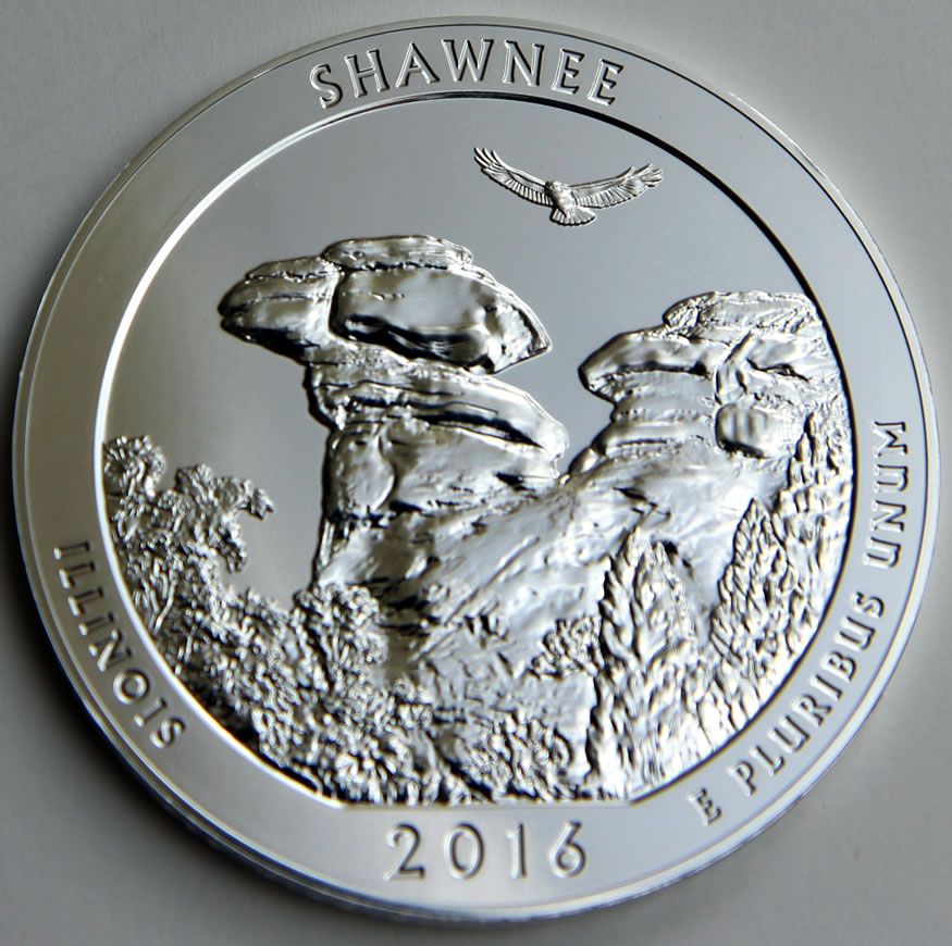 Released earlier this year on quarters and five ounce coins are the designs commemorating Shawnee National Forest in Illinois, Cumberland Gap National Historical Park in Kentucky, and Harpers Ferry National Historical Park in West Virginia. The first two coins sold out with final sales of 105,000 and 75,000. Sales of the Harpers Ferry piece stand at 34,200.