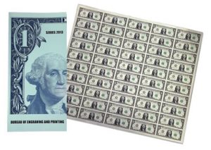 The Bureau of Engraving and Printing is now accepting orders for large, uncut currency sheets of Series 2013 $1 Federal Reserve notes.