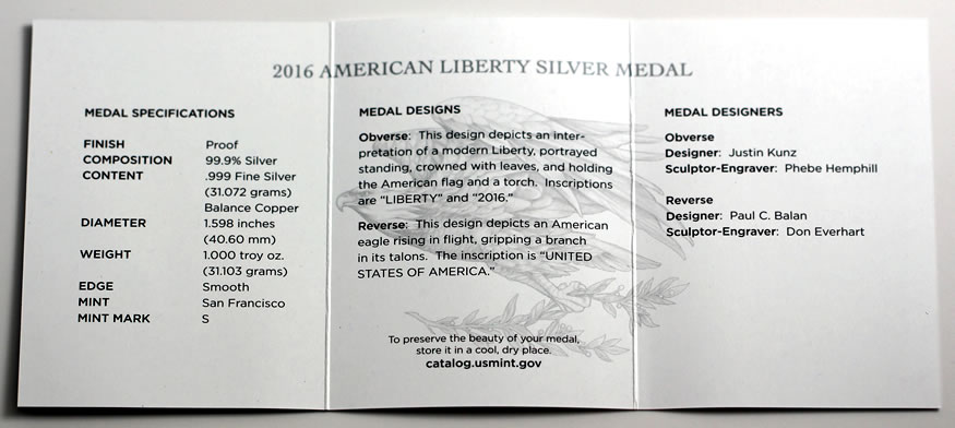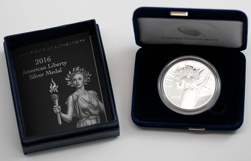 Produced on the same kind of silver blanks that are used for American Silver Eagles, the Liberty medals also arrive in the same style packaging and presentation case as are used for proof American Silver Eagles.