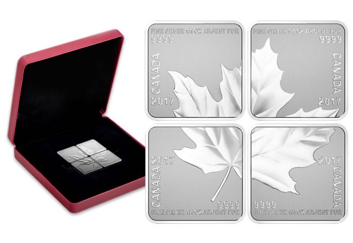 New from the Royal Canadian Mint is a quartet of 99.99% fine silver coins that together form one complete maple leaf.
